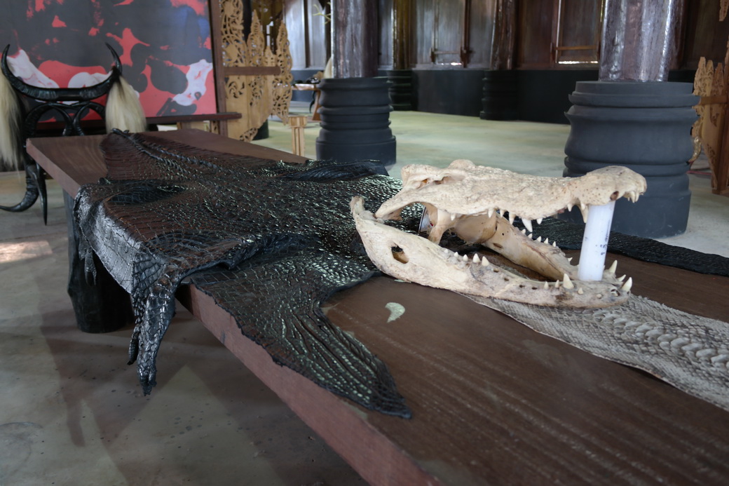 Baan Si Dum – Black Houses. Very Artistic. About 14 KN north from chiang Rai on route 1. To the left. Look for the black sign. Free admission.