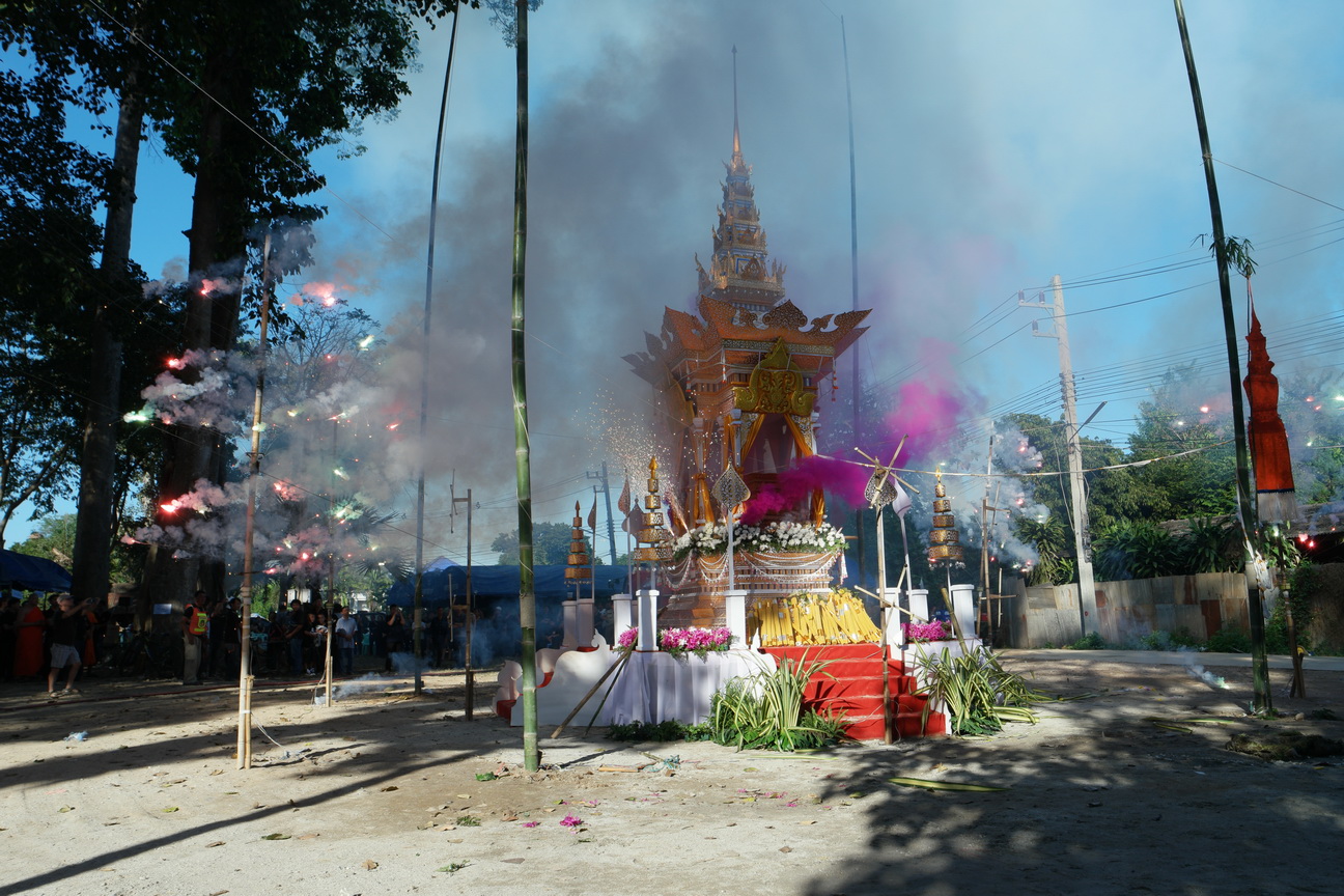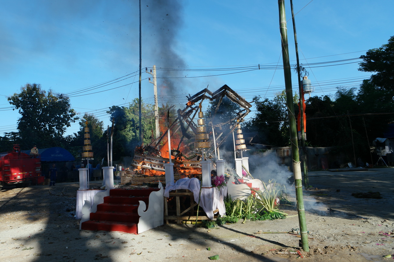 ביום שבת נכחנו בטכס שריפת גופת ראש מנזר בודהיסטי – בוואט פא דואה הנמצא כ 15 קילומטר דרומית לציאנג מאי על שפת נהר המא פינג. הטכס היה מרשים בניהולו ובאיפוק ששררו בו. הנזיר המדובר היה ראש הוואט והוא היה רק בן 38 שנים במותו ממחלה. תוכלו לצפות בתמונות של המקום, סביבתו הקרובה ומהלך הטכס ששיאו כאמור, השריפה שהחלה במפגן זיקוקין מרשים ובו אפסארה שהגיעה מראש העצים הכבירים מסביב הדליקה את המבנה בו יצאה גופת הנזיר לדרכה האחרון. על קטעי הוידאו המרשימים תודתי לברוך רוזן