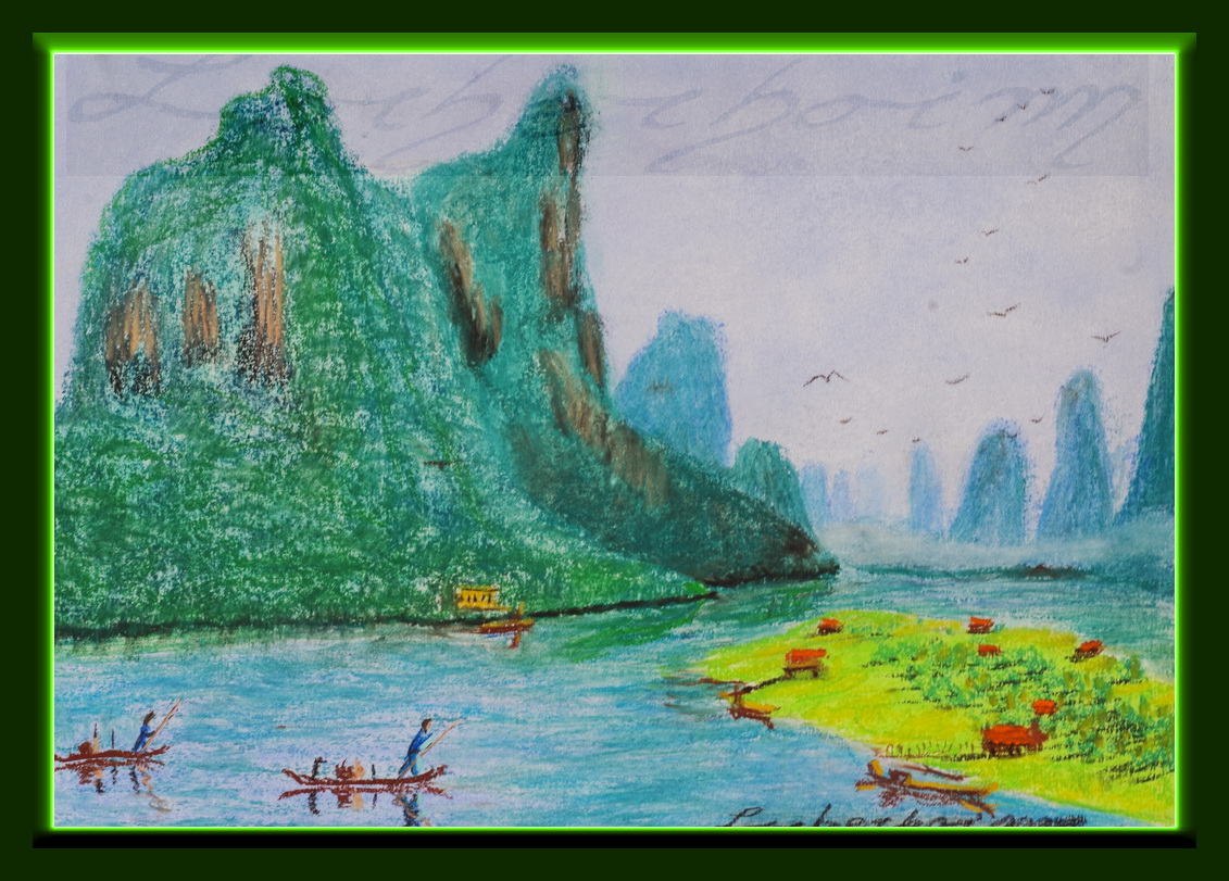 כל הציורים בגלריה זו הינם ציורי פסטל גיר על נייר, אלה המתארים השבוע, נופים ואנשים במחוזות סין בואכה יאנגשואו, גווילין דרך זאהושינג לגויאנג אשר בסין. פרט לתמונה הרביעית המתארת נוף במאה הונג סון שבתאילנד.