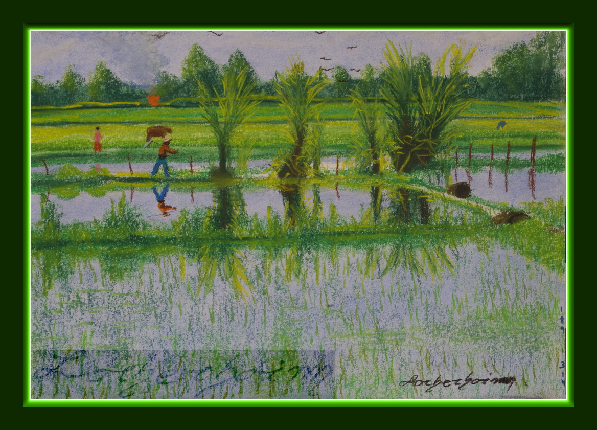 כל הציורים הינם מציאנג ראי, תאילנד. פרט לציור השני המתאר נערה מוכרת צעיפים באנקור וואט, קמבודיה. הציור הנועל גלריה זו הינו של כרכרת תיירים באינלה לייק, מיאנמאר.